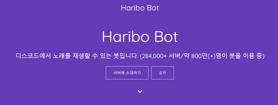디스코드 봇인 '노래하는하리보' 는 디스코드에서 매우 대중적이 노래 재생봇입니다.