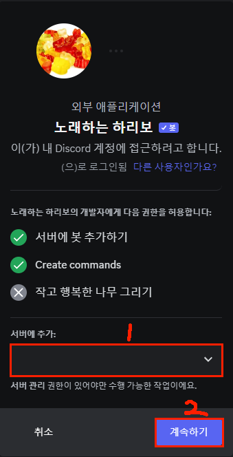노래하는하리보 서버에 추가하기
