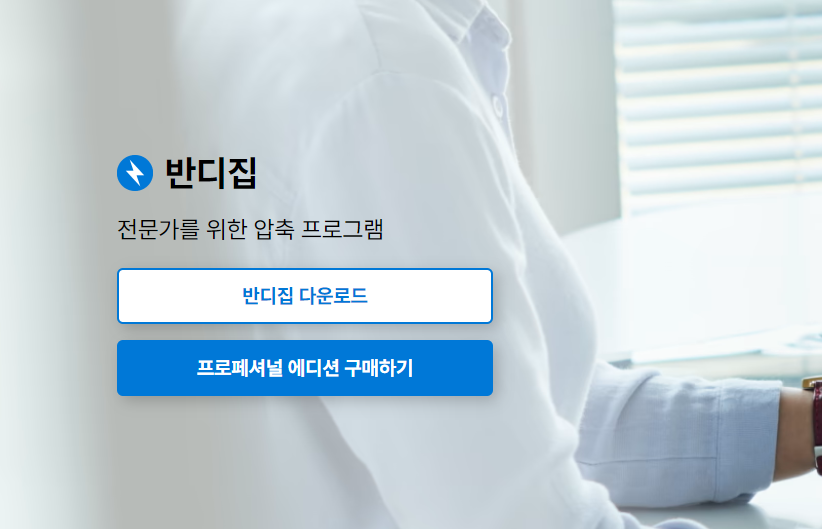 그리고 바로 보이는 [반디집 다운로드] 버튼을 클릭하시면 되겠습니다. 만약 프로 버전을 구매해서 사용하고 싶다면 [프로페셔널 에디션 구매하기] 버튼을 눌러주시면 됩니다만.. 일반 버전도 완벽하기에 딱히 구매할 필요는 없습니다.