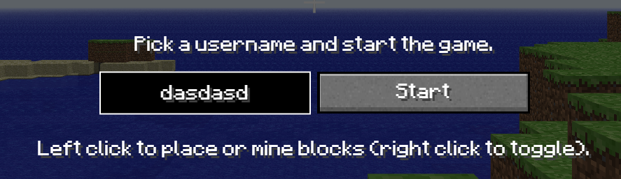 마인크래프트 클래식 페이지로 이동한 후 닉네임을 정한 후 [Start] 버튼을 클릭하여 게임을 시작합니다.
