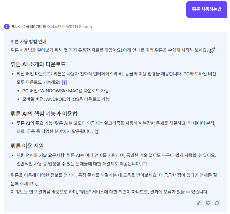2. 뤼튼 검색 기능을 사용하려면