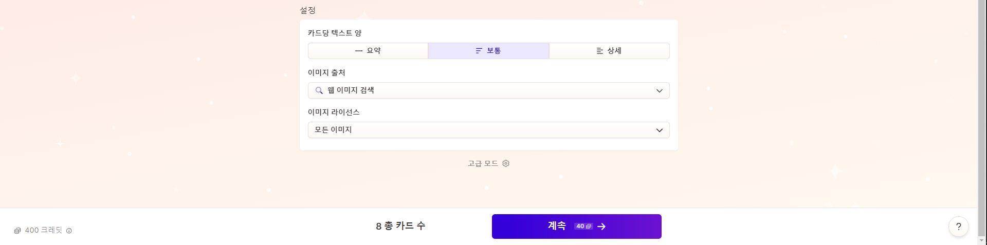 계정을 생성하면 기본적으로 400 크레딧이 지급되며 이는 PPT 생성을 약 10번 할 수 있다는 겁니다.