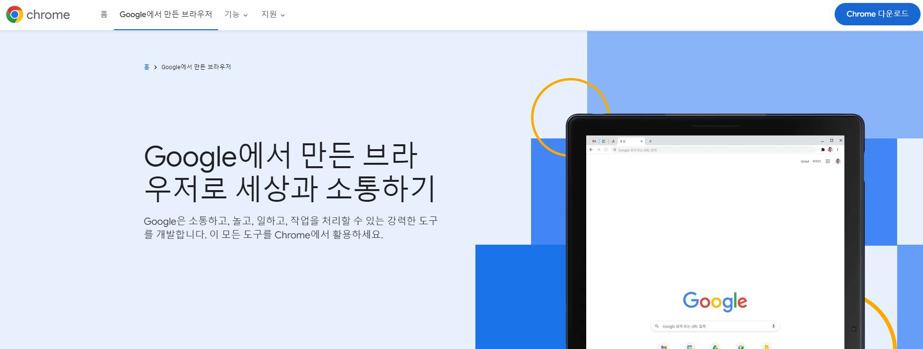 처음 접속한 홈페이지에서, [ Chrome 다운로드 ] 를 클릭해주시면 됩니다.